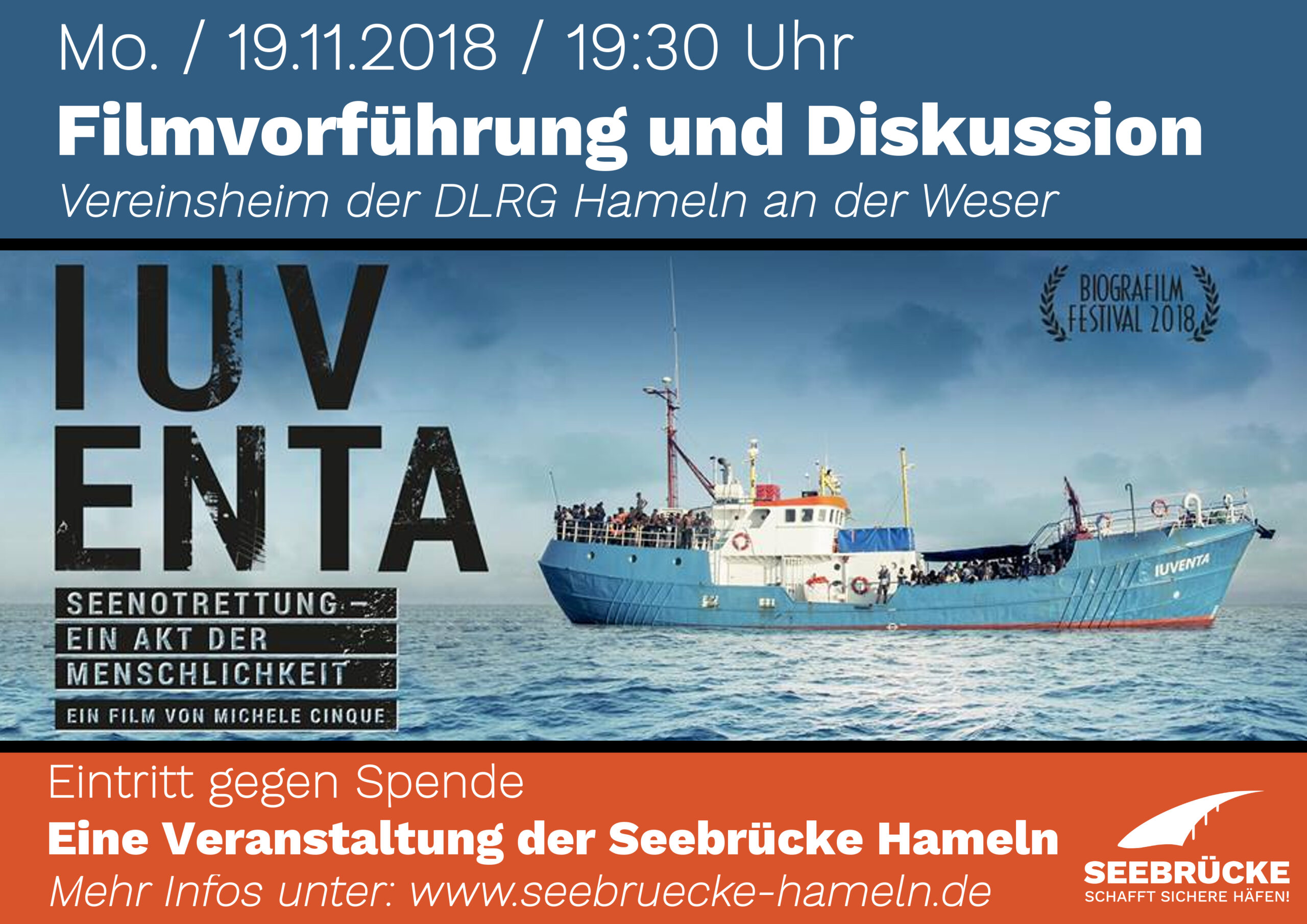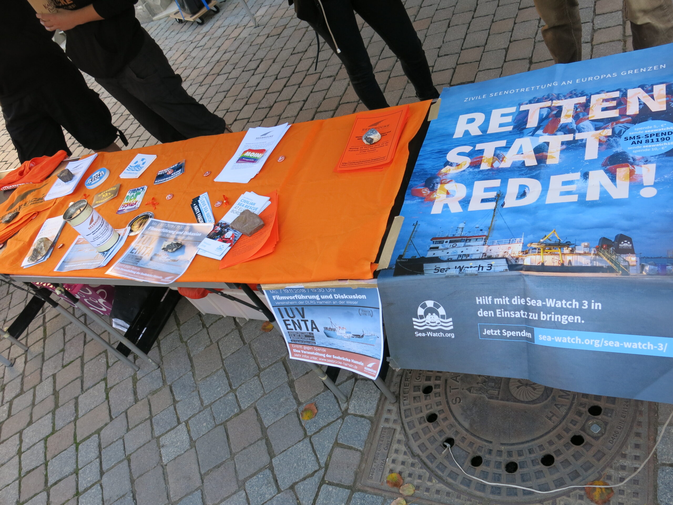 Die nachfolgenden Bilder sollen die Aktion für Interessierte dokumentieren und zum mitmachen einladen, zum Beispiel beim nächsten offenen Treffen der Seebrücke Hameln am Montag, den 29.10.2018, um 20 Uhr im freiraum Hameln (Walkemühle 1a, 31785 Hameln).