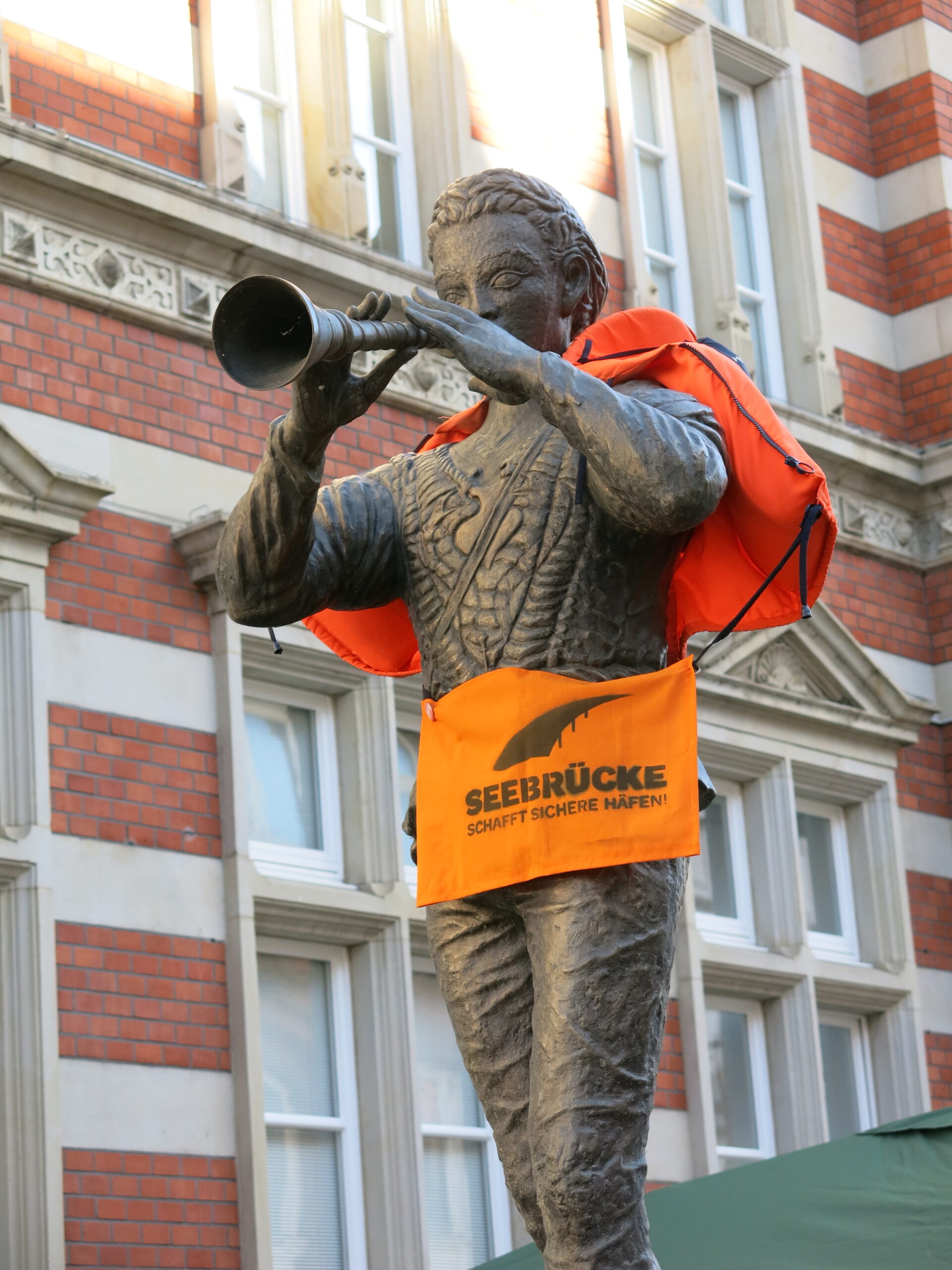 Am Samstag, den 13. Oktober 2018, fanden sich von 11 bis 15 Uhr einige Aktive der Seebrücke Hameln in der Innenstadt von Hameln ein, um dort mit einem kleinen Infostand und einer wirklich äußerst zurückhaltenden Umgestaltung des dortigen Rattenfänger-Brunnens auf die absolut untragbare Situation auf dem Mittelmeer aufmerksam zu machen. Hierfür wurden zahlreiche Flugblätter verteilt, erläuternde Gespräche zur aktuellen Lage vor Ort geführt, Spenden für die zivile Seenotrettung gesammelt und es gab erfreulicherweise auch noch Live-Musik von befreundeten Musiker*innen zu hören.